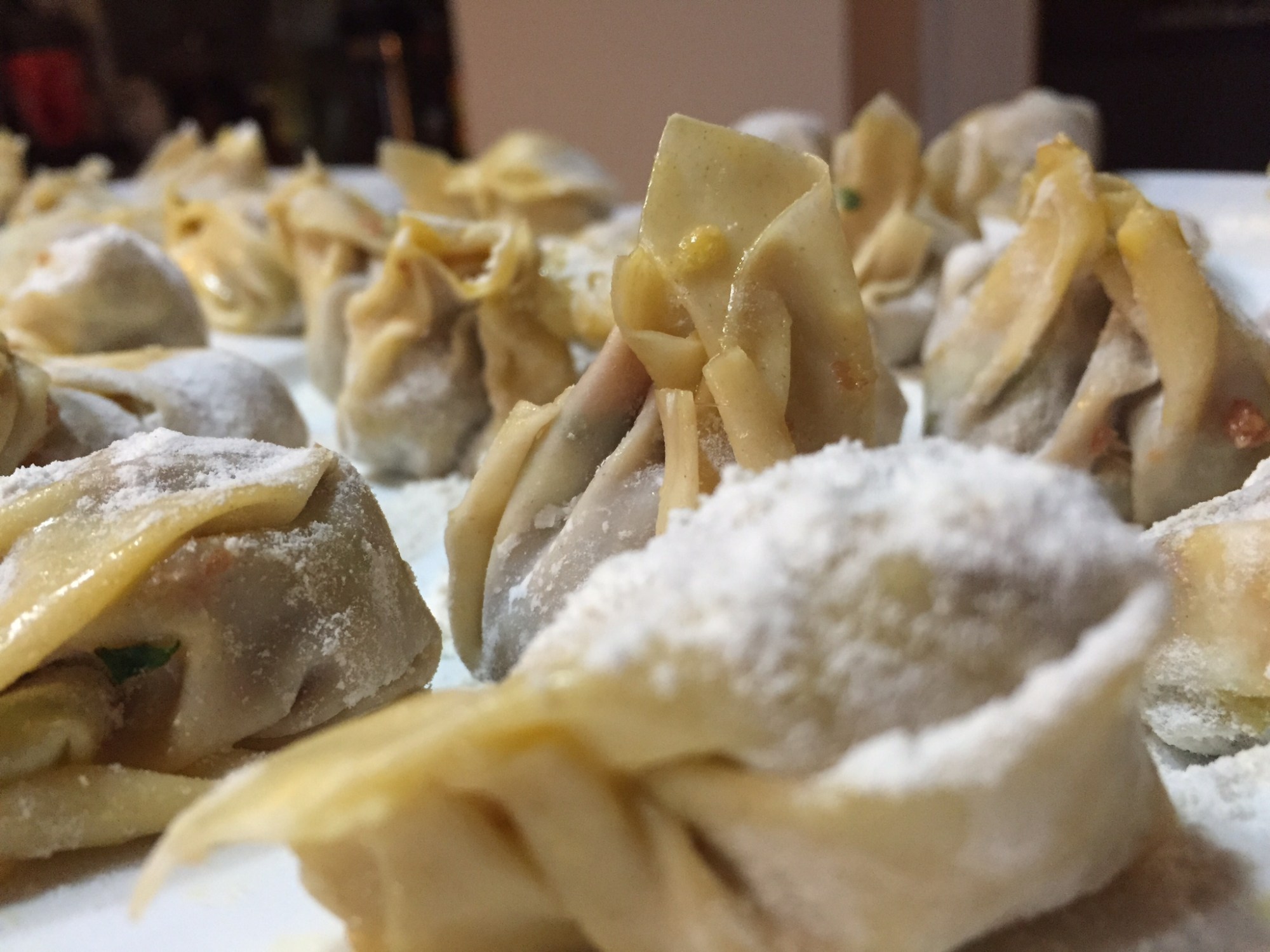 Ich liebe jegliche Art von Teigtaschen, egal ob Ravioli, Tortelloni, Manti, Jiaozi, Gyoza, Dim Sum etc. Vor die Wahl gestellt, Steak oder gute, selbst gemachte Teigtaschen, ist meine Wahl klar. Neulich habe ich mich an Teigtaschen versucht, die einfach erstellt waren und auch noch schweinelecker. Ich habe Wan Tans/ Dim Sum gemacht.